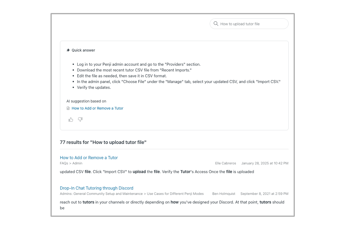When you type a question into the search bar, you’ll receive a summarized answer generated from relevant Help Center articles, along with the article used to create that answer. You’ll also still see the usual list of matching articles below.